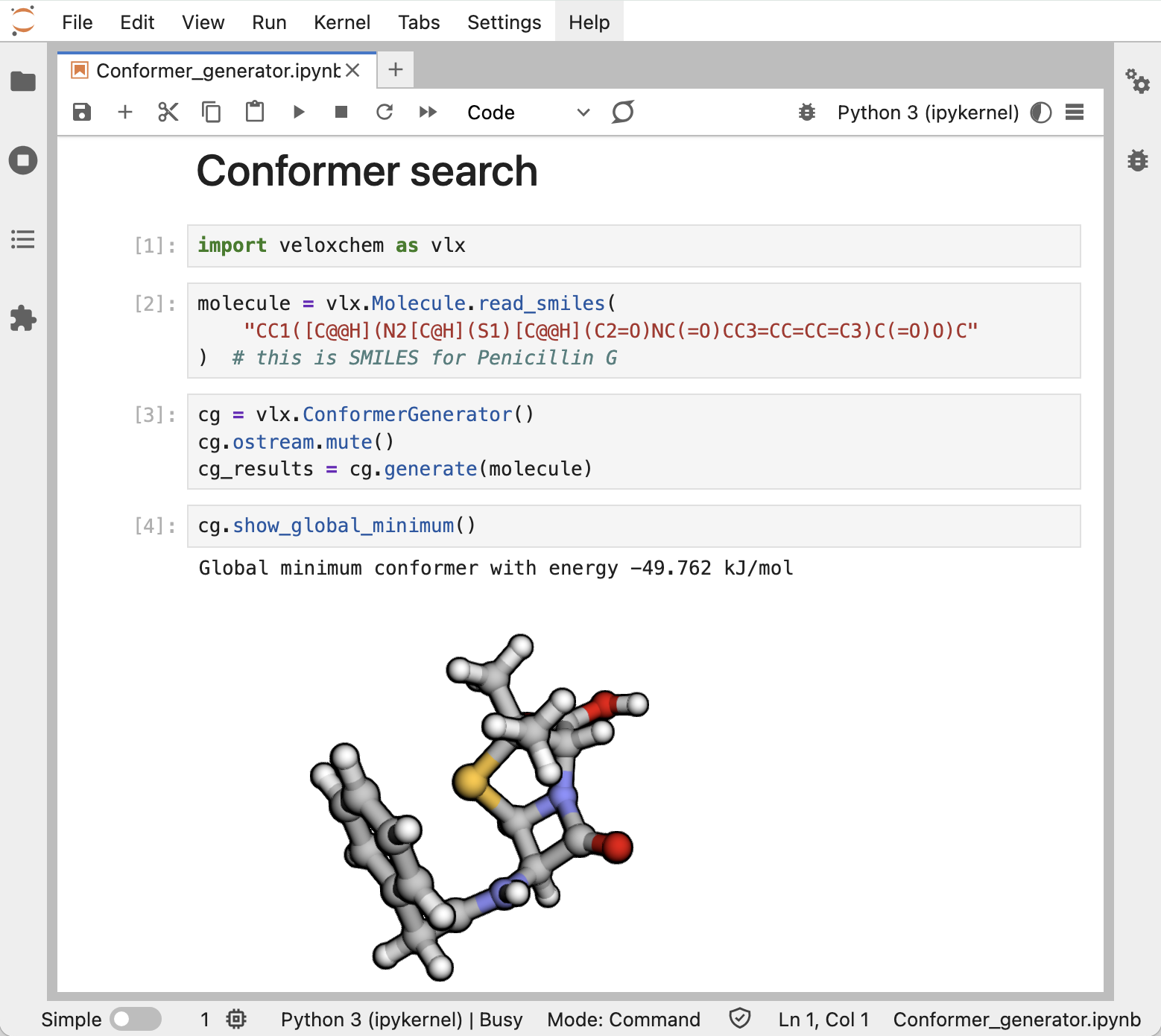 On a personal computer, we recommend importing the VeloxChem Python module and running calculations in Jupyter notebooks. This provides a very flexible framework for the creation of workflows, as amply illustrated in the eChem book Fransson et al. (2022).